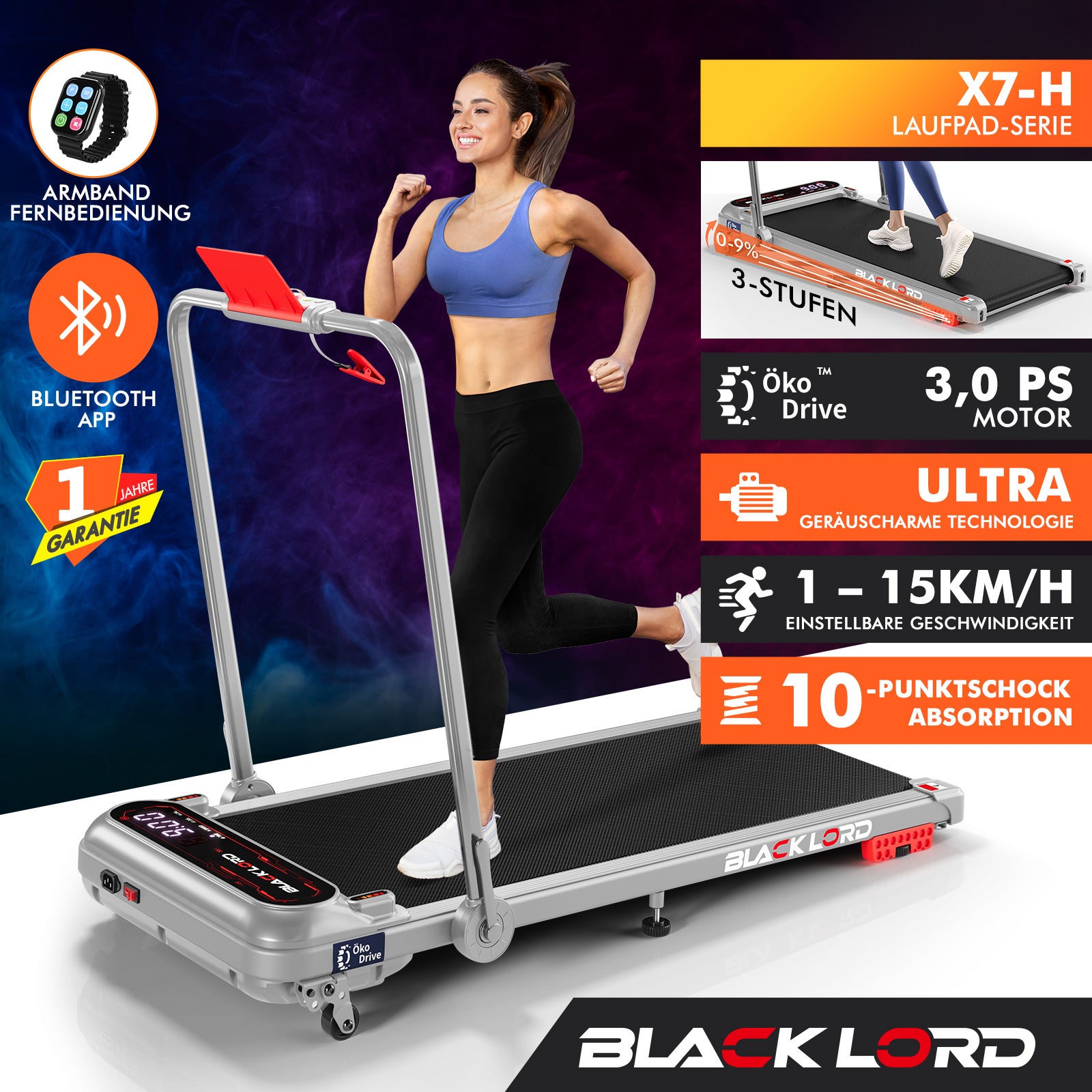 Bleiben Sie gesund und fit, auch drinnen. Warten Sie nicht länger! Das BLACK LORD® Walking Pad X7-H revolutioniert Ihr Fitness-Erlebnis zu Hause oder in der Garage.