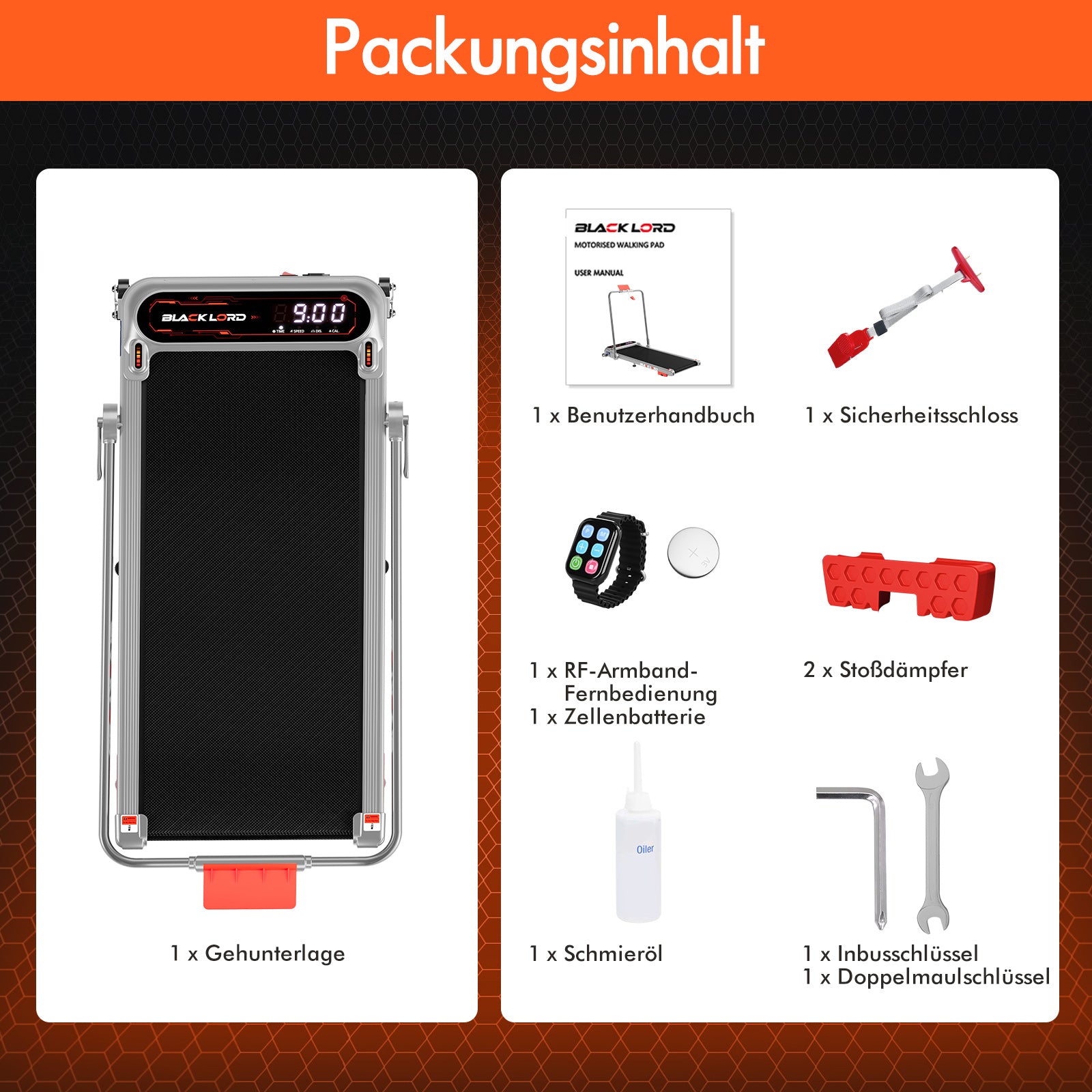 * 1 x BLACK LORD Laufband* 1 x Armband-Fernbedienung* 1 x Handbuch