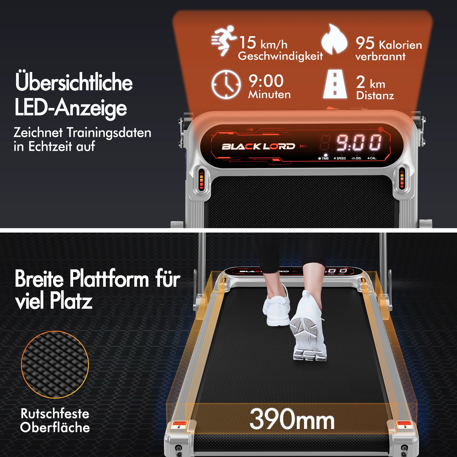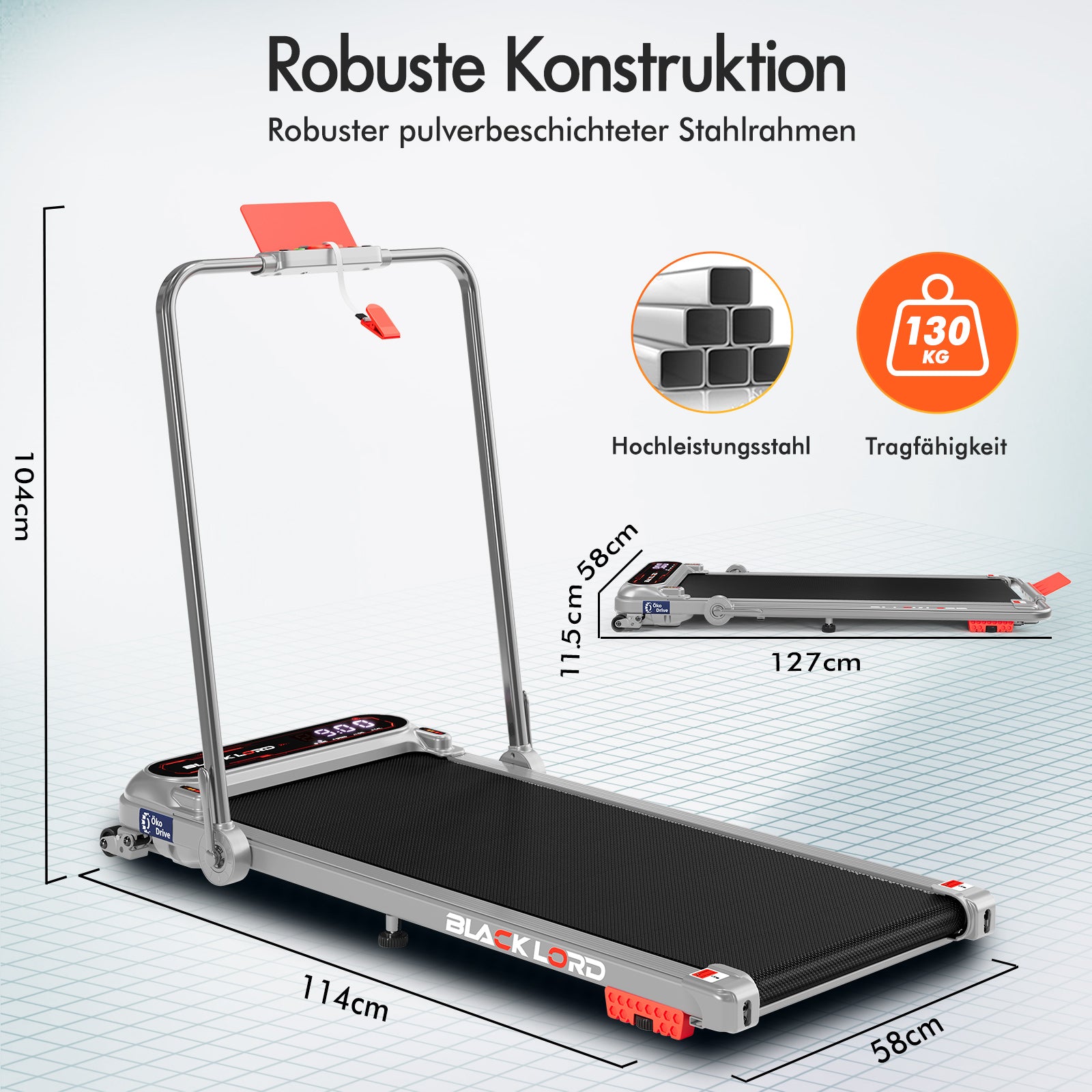 BLACK LORD Laufband Elektrisch Laufmatte Neigung Stoßdämpfer Faltbar Silber
