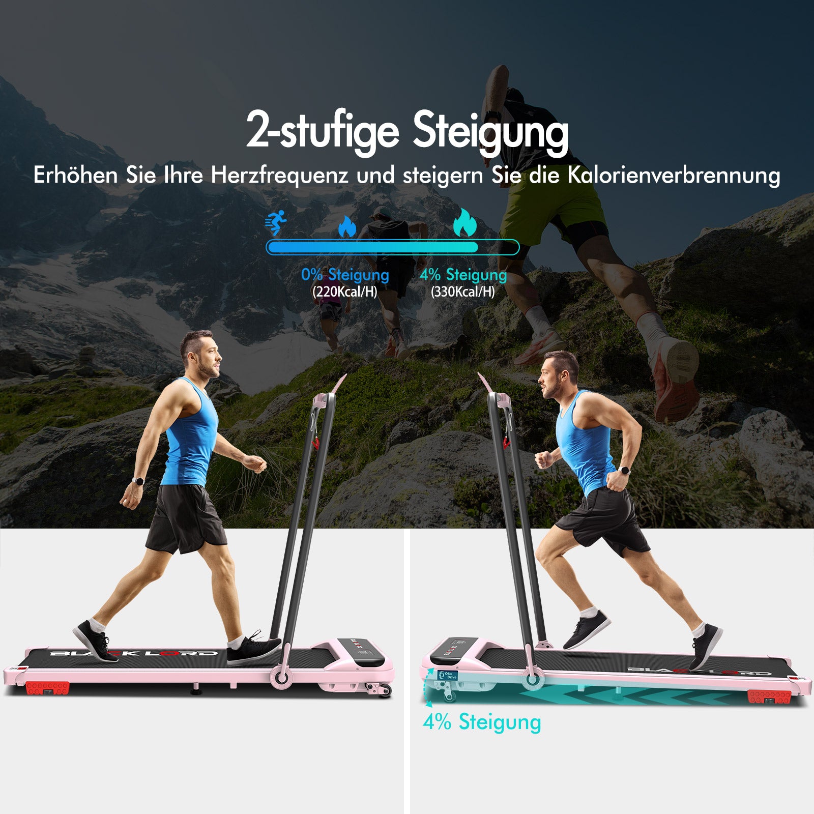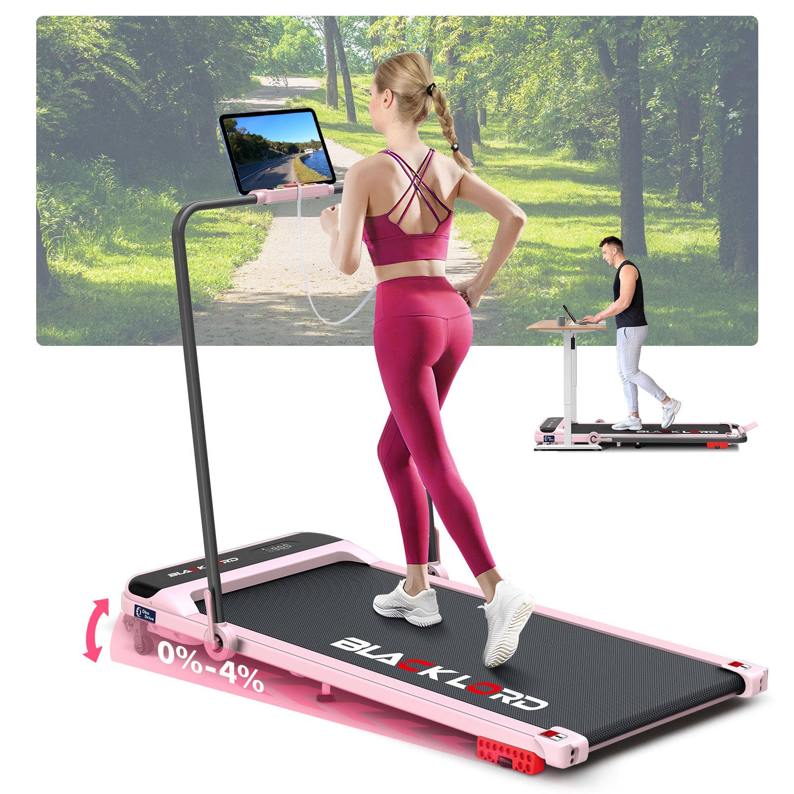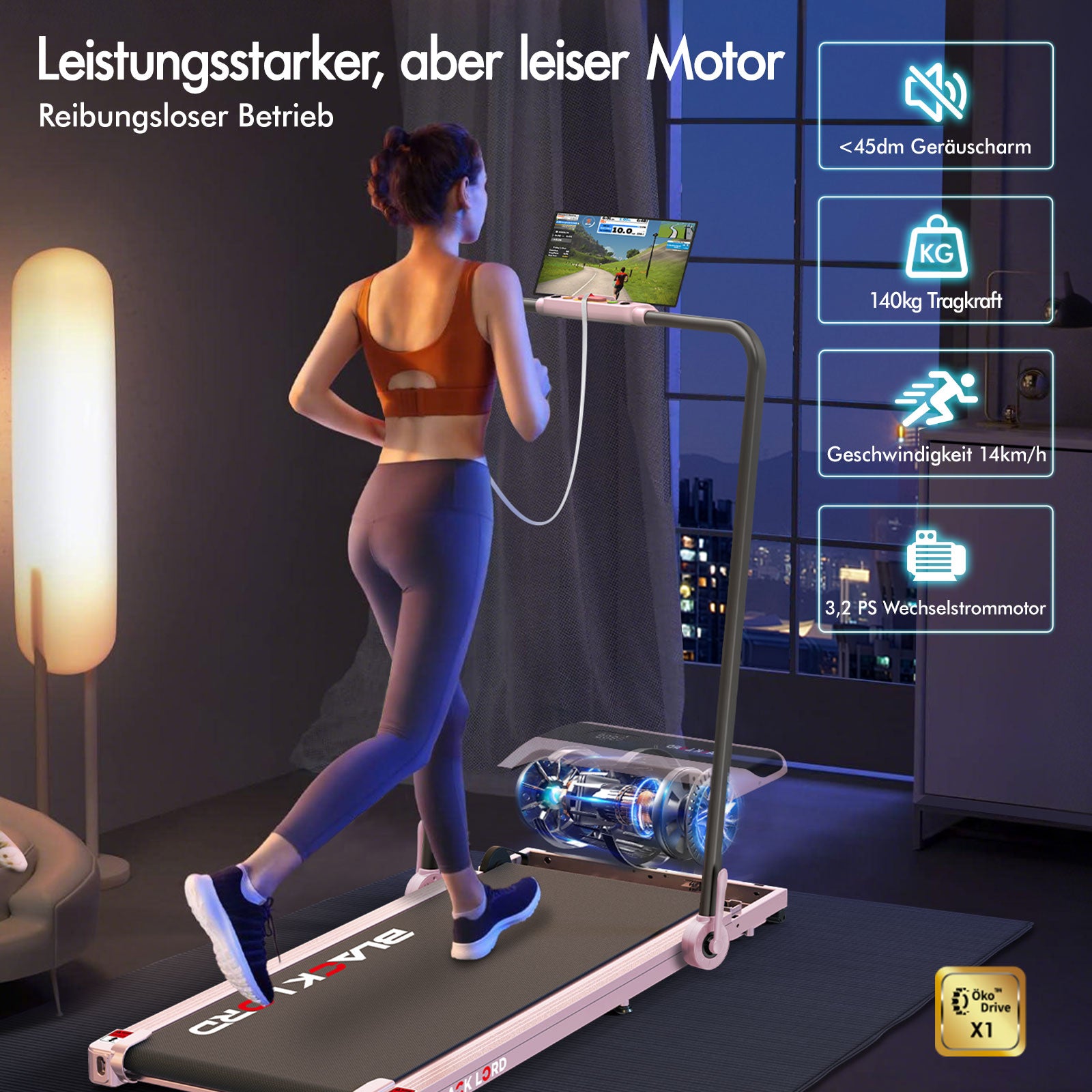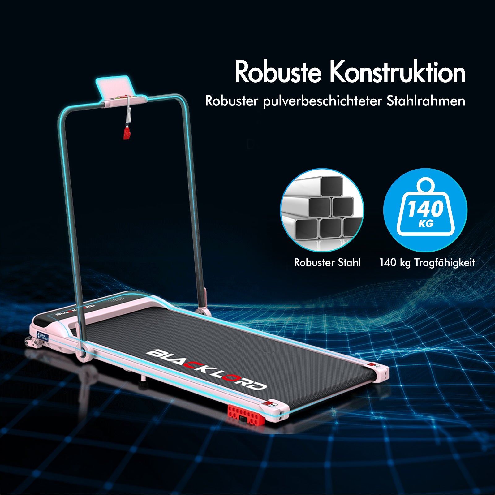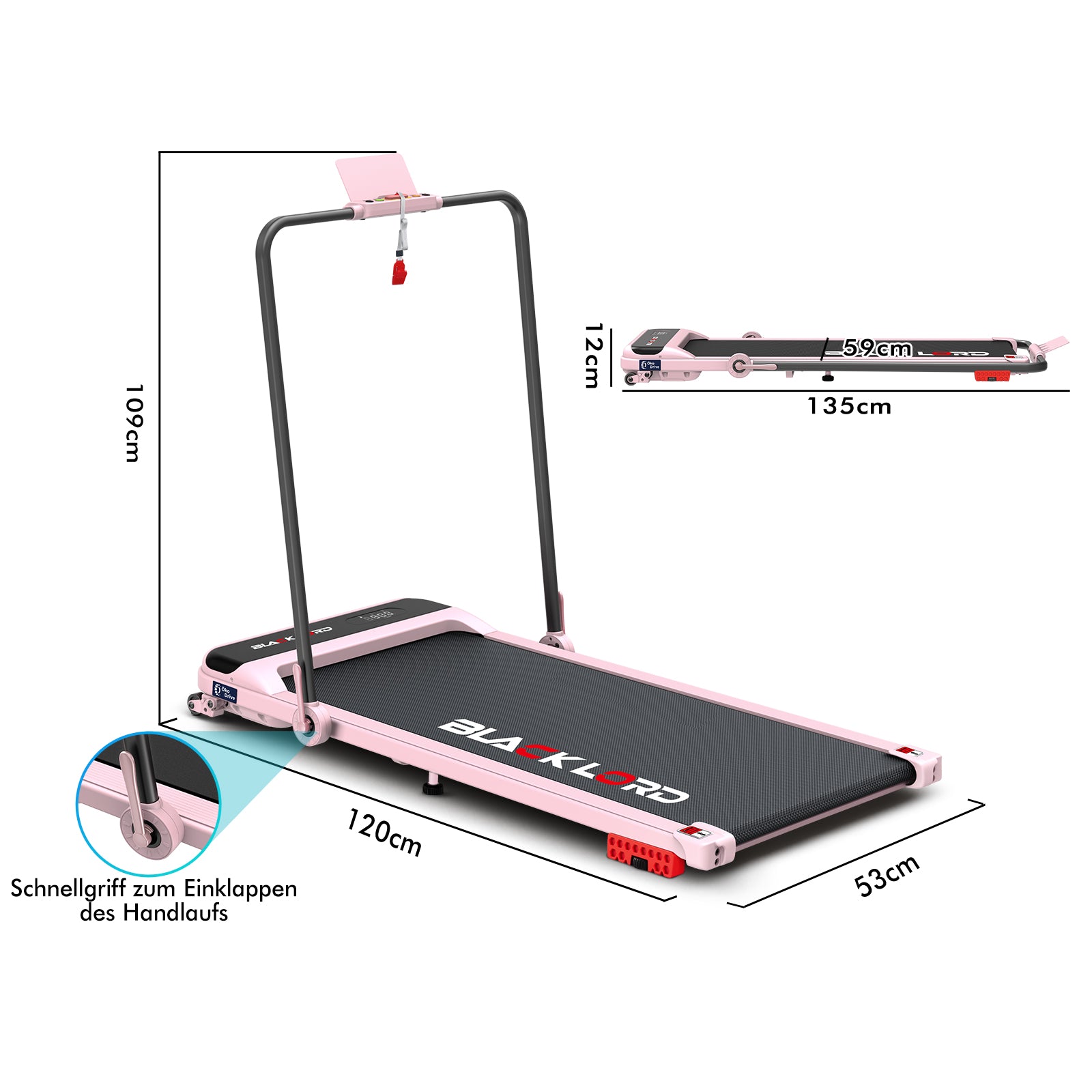 BLACK LORD Laufband Elektrisch Tretmühle Heim BüroNeigung Faltbar Rosa