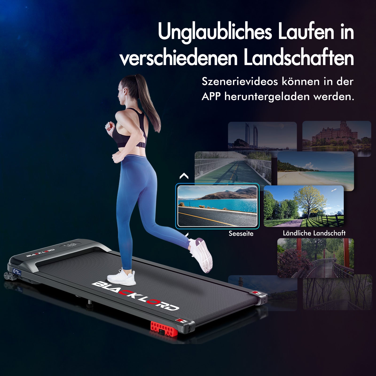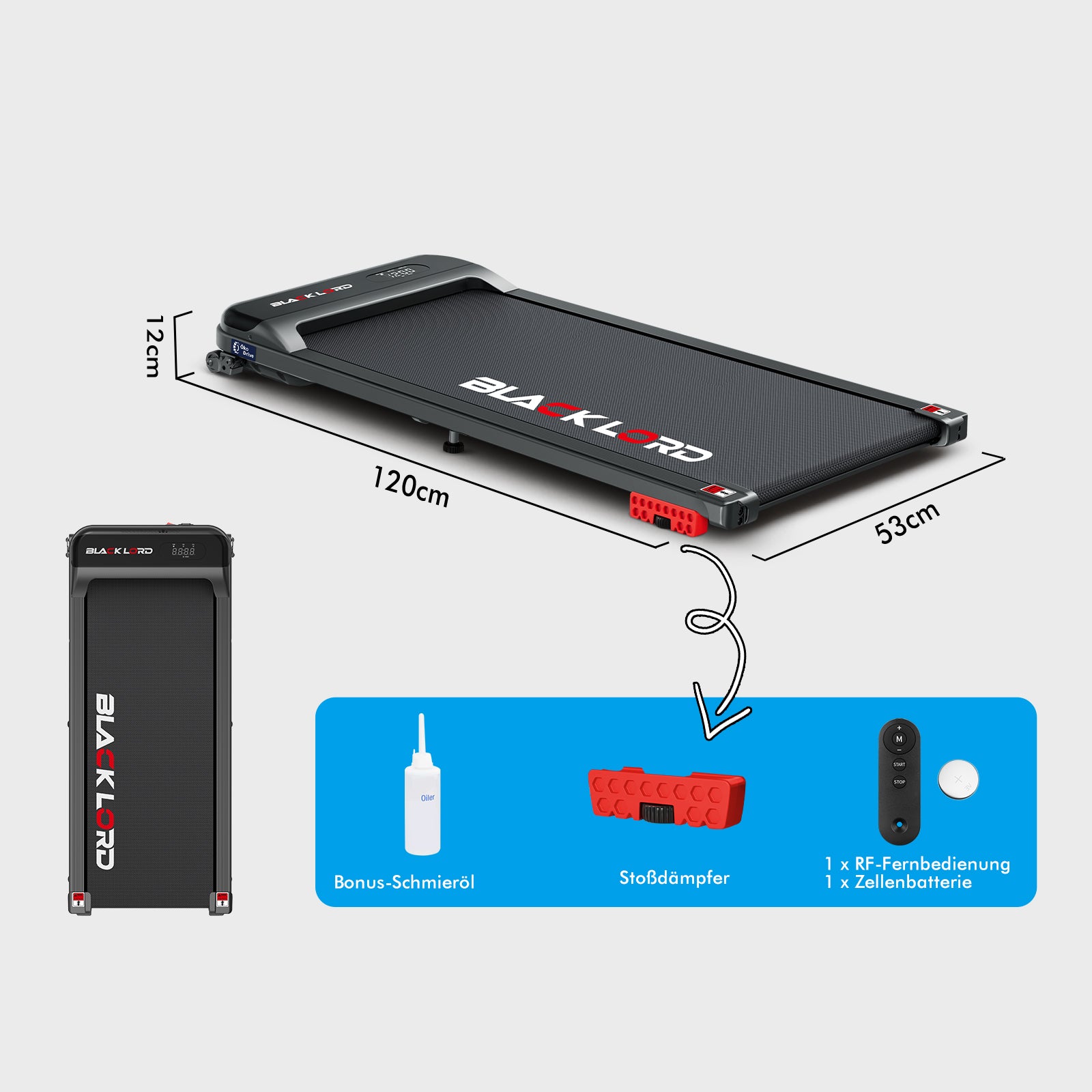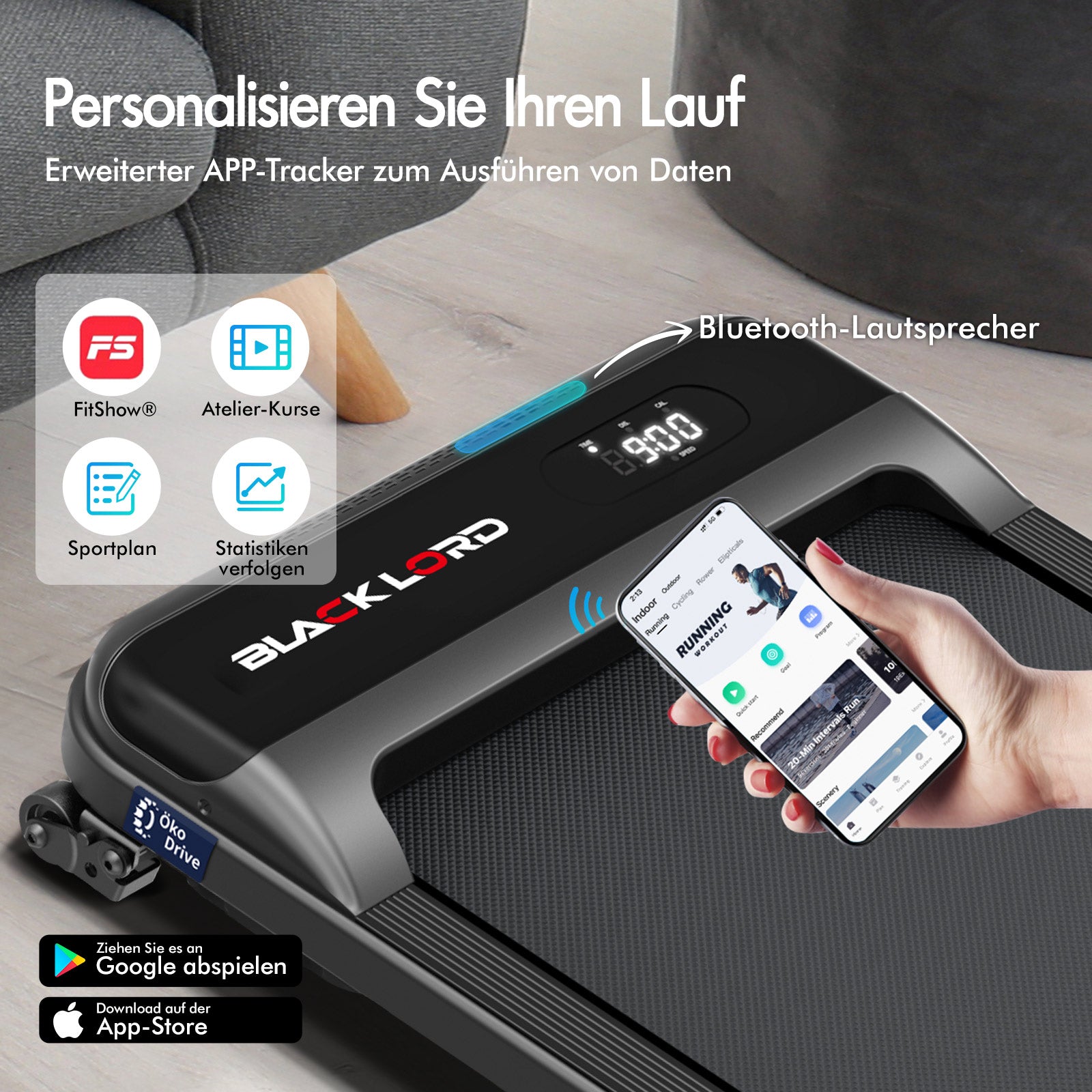BLACK LORD Laufband Elektrisch Tretmühle Zuhause Büro Fitnessstudio Steigung, Schwarz