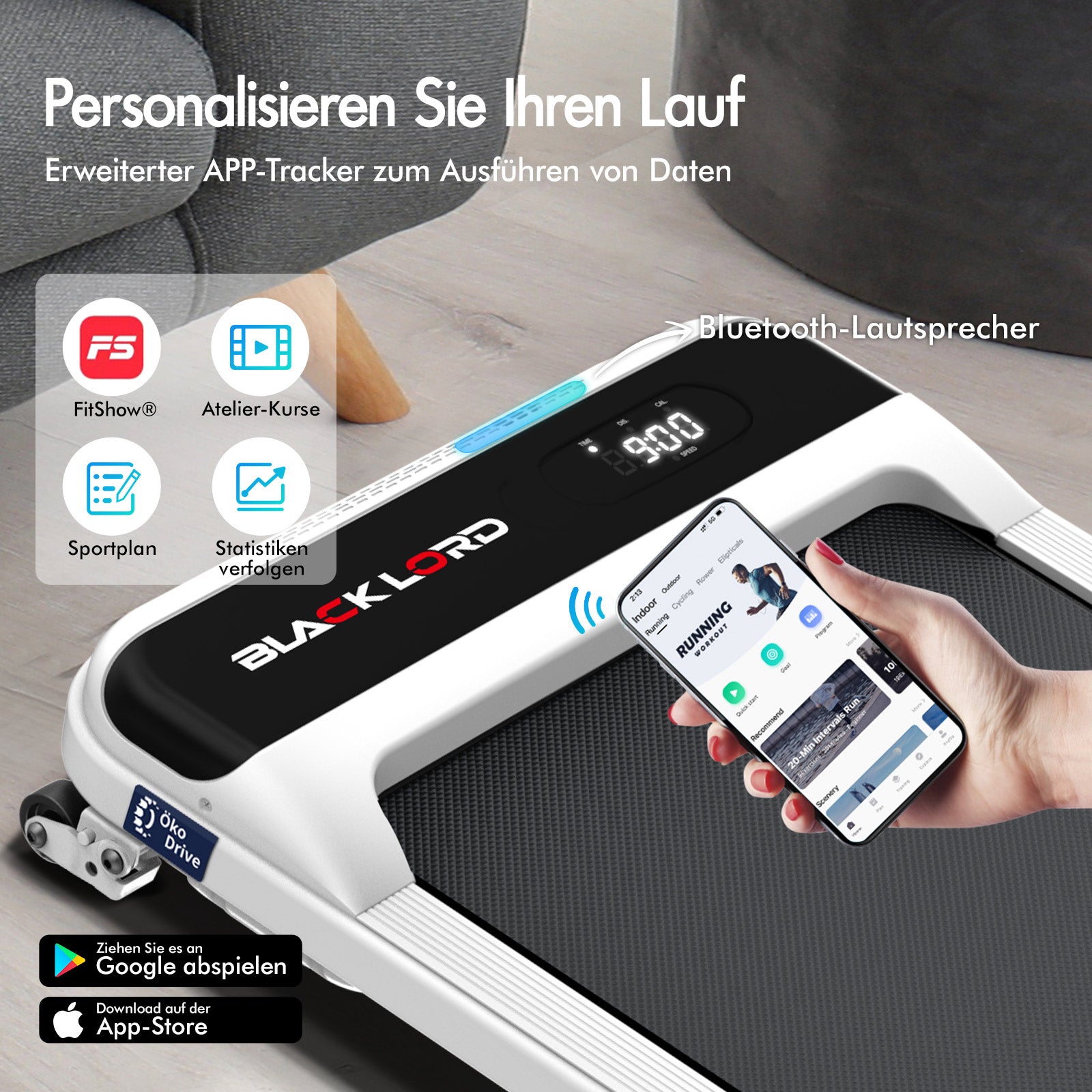 BLACK LORD Laufband Elektrisch Tretmühle Zuhause Büro Fitnessstudio Steigung, Weiß